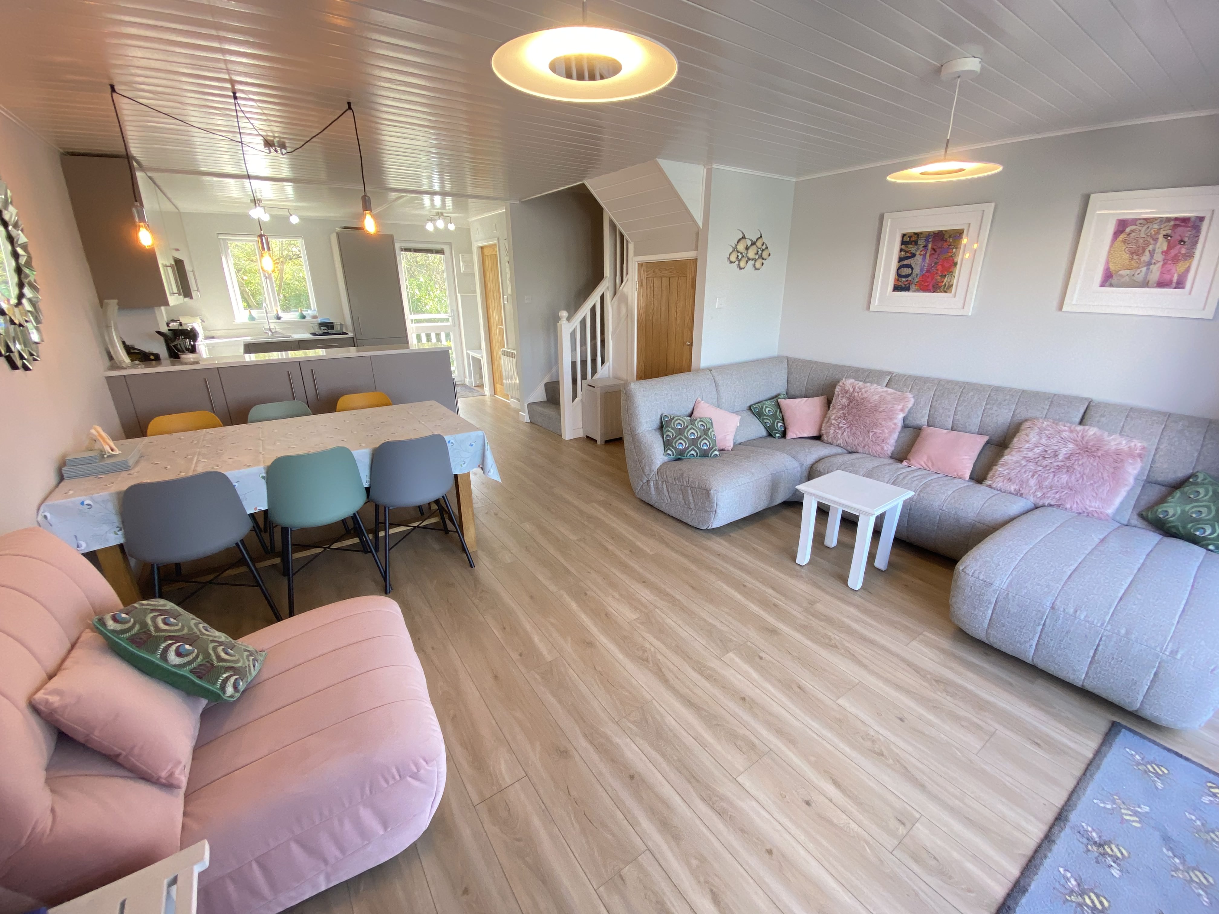 Living/Dining Room: The main open-plan living space features plenty of comfy seating and a dining area for six people. A fantastic space for entertaining, relaxing or planning your next adventure around the Cotswolds. There is also a large smart TV for catching up on Netflix! A selection of DVDs, games and books are also available.